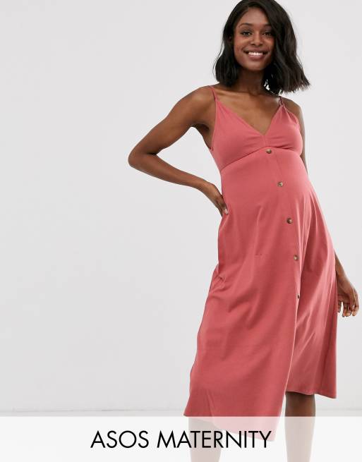 Asos Design Maternity Exklusives Midi Hangerkleid Mit Tragern Und Knopfen Asos